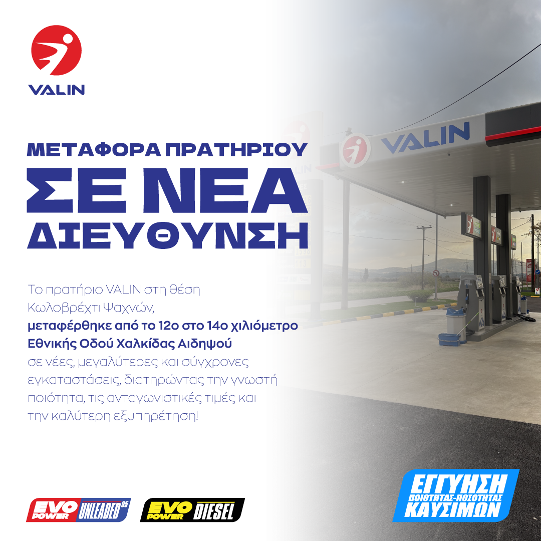 Το πρατήριο VALIN μεταφέρθηκε από 12ο στο 14ο χιλιόμετρο ΕΟ Χαλκίδας-Αιδηψού.